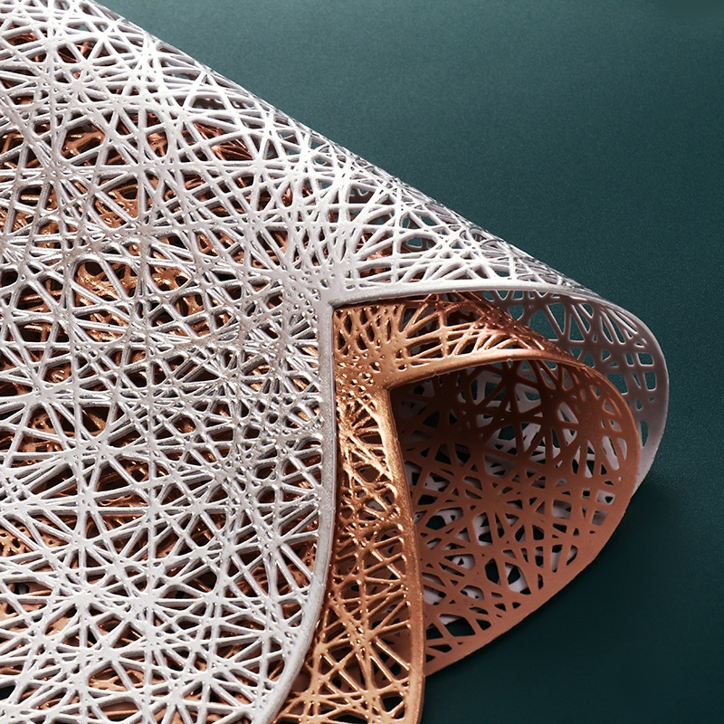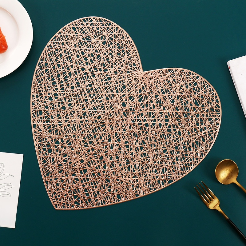 Mantel individual y posavasos de PVC con diseño entrelazado en forma de corazón y detalles dorados